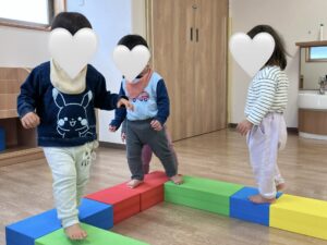 最初はハイハイや慎重に歩いて進んでいましたが、繰り返し遊ぶうちにコツを掴んできて、上手に進んでいた子どもたちです!