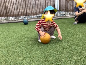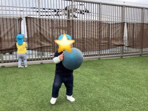 入園、進級して初めての屋上で遊ぶざくろ組さんとゆず組さん。