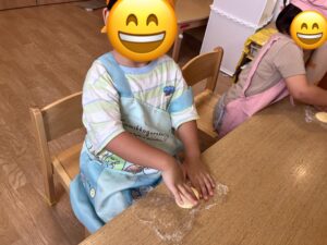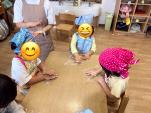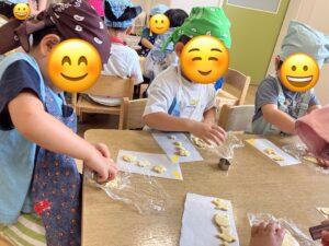 自分たちで生地を薄く伸ばし、好きな型で抜きました。