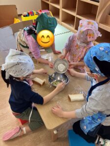 5歳児クラスでは、シュガートーストの材料を買いにスーパーへ行きました。