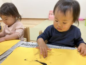 指を動かすと線が表れてとても不思議そうな様子ですね。